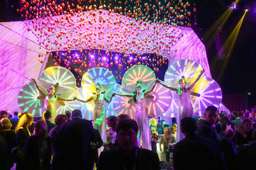 Le spectateur à l’impression d’avoir sous les yeux un tableau animé où les couleurs changent et circulent sans cesse d’un costume à l’autre, créant ainsi une expérience visuelle intense. Vivez un spectacle d’échassiers lumineux intense où l'esprit de Claude Monet n'est jamais très loin .